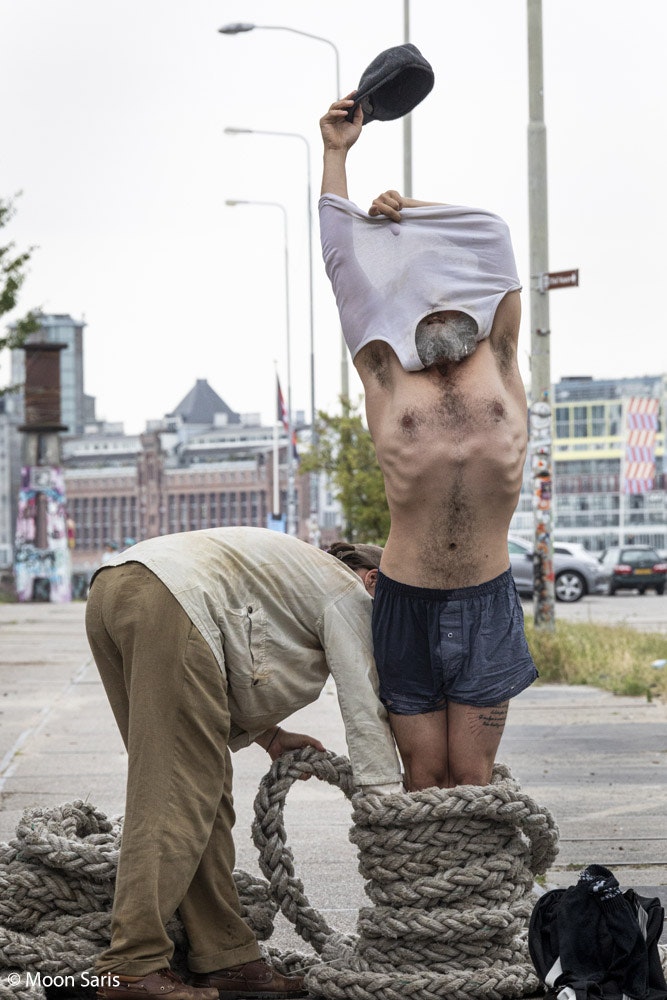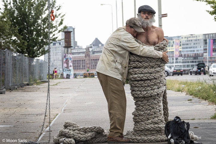 In the distance near the water a soft body is born. Time starts. The body examines, meets, is happy and depressed, loves and says goodbye. You watch from a distance. Gradually you see how the flesh changes due to the hardness of the concrete and time.