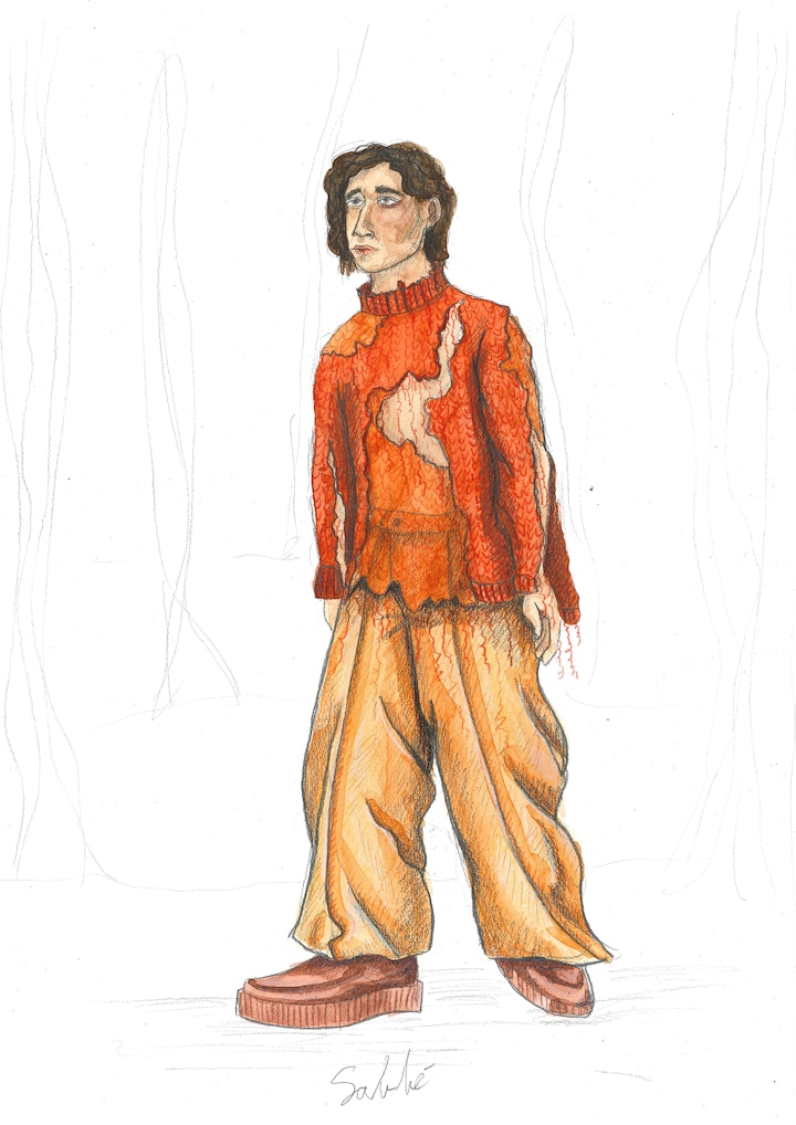 The play is about Wilfried who travels to a strange land looking for a final resting place, the homeland of his father. In a country shaped by war, he meets people and hears about theire stories. Throughout the story he loses himself but finds himself again. Reborn and cleansed.
